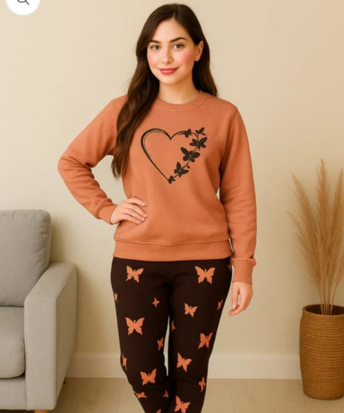 Add a touch of charm and comfort to your winter nights with our Winter Heart & Butterfly Printed Women's Night Suit PJ Set. Designed to keep you warm while looking effortlessly stylish, this cozy set...