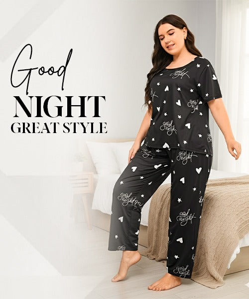Make every night effortlessly stylish and comfortable with our Black “Good Night” Half Sleeve Printed Cotton Night Suit for Women. This chic nightwear set features a modern printed “Good Night” design on a timeless black...