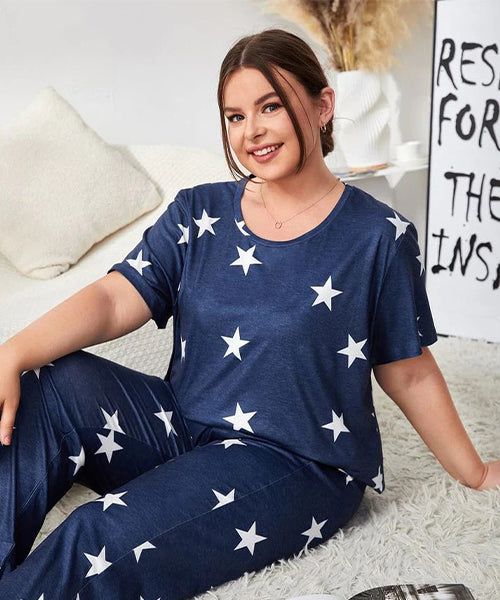 Experience cozy nights and stylish comfort with our Navy Blue Star Printed Nightwear Set. Made from soft, breathable cotton fabric, this two-piece pajama set ensures maximum comfort for a relaxing sleep. The loose-fit top with...
