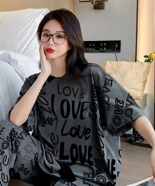 Stay cozy and stylish with our Grey Double-Dil Printed Night Suit. Designed with soft, breathable fabric and a trendy half-sleeve top — perfect for lounging or a peaceful night’s sleep.