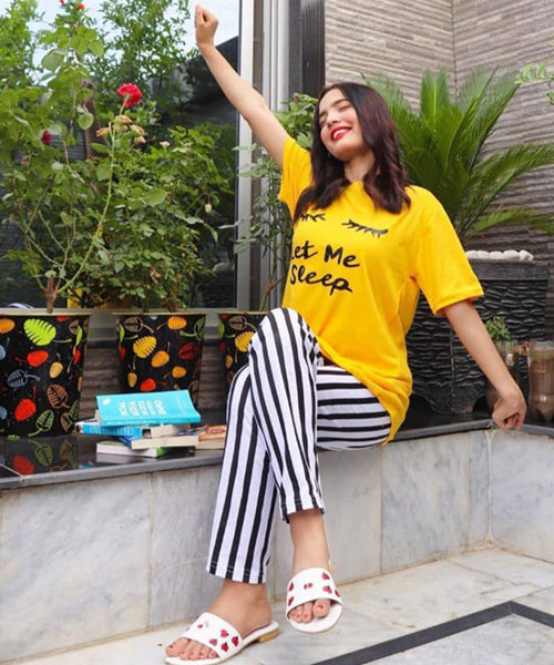 Bring comfort and fun together with this bright yellow “Let Me Sleep” graphic tee. Designed with cute eyelash artwork and a relaxed fit, it’s perfect for lounging, casual mornings, or cozy nights. Soft, breathable fabric...