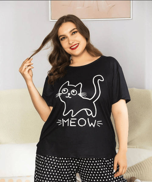 Unwind in style with our MEOW Cat Printed Pajama Set, designed for ultimate comfort and cuteness! 🐾 Made from soft, breathable fabric, this cozy black pajama set features a playful cat print top paired with...