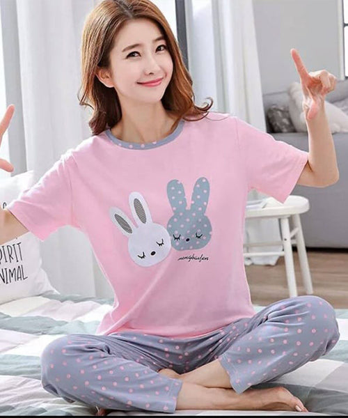Experience ultimate comfort and cuteness with our Bunny Printed Pajama Set. Crafted from soft, breathable fabric, this adorable pink and grey set features a relaxed fit, playful bunny print, and polka dot bottoms — perfect...